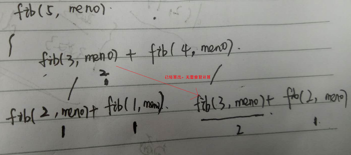 //如果已经求出了fib(n)的值直接返回,否则将求出的值保存在Memo备忘录中。