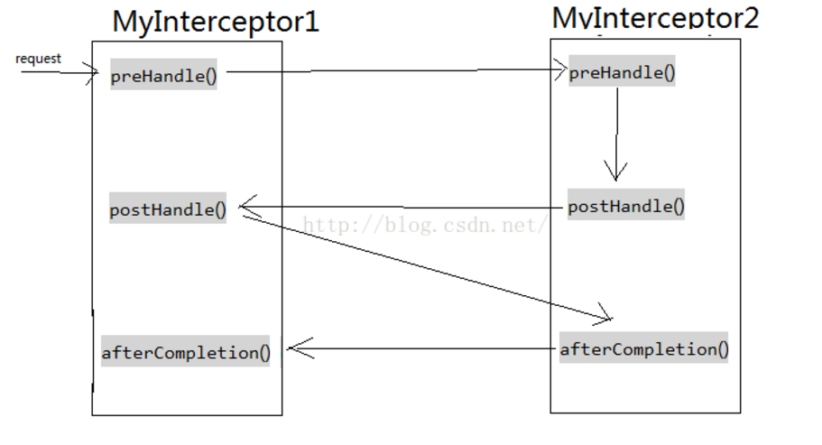 springmvc的拦截器实现HandlerInterceptor接口后,会有三个抽象方法需要实现,分别为方法前执行preHandle,方法后postHandle,页面渲染后afterCompletion。