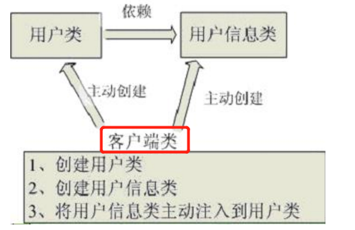 ①传统程序设计如下图,都是主动去创建相关对象再组合