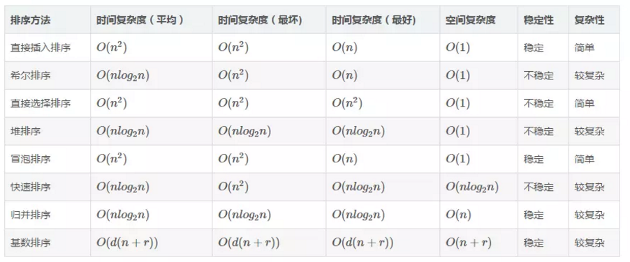 (十一)排序算法分类、稳定性、时间复杂度和空间复杂度总结