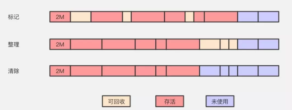 二是空间问题,标记清除后会产生大量不连续的内存碎片,一些需要连续内存的,用不了这些空间