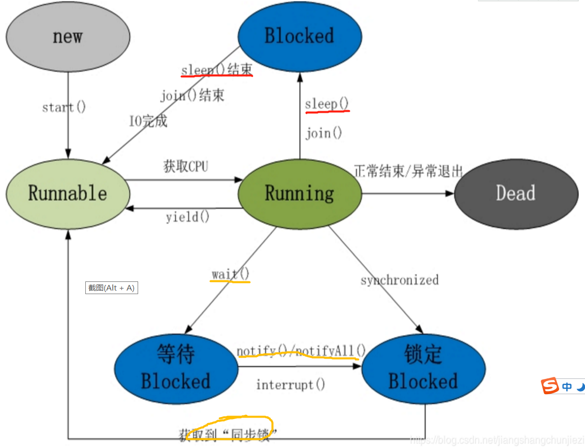 sleep()方法并不会释放锁标志,容易造成死锁情况。因此,一般情况下,不推荐用sleep(),而应用wait()