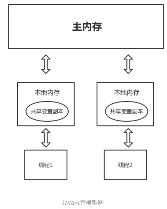 上图为Java内存模型,由上图可知共享变量是保存在主内存中的,当一个线程需要操作共享变量时,需要从主内存拷贝一份共享变量的副本到本地内存(这个本地内存对其他线程是不可见的),此时如果线程修改了共享变量,则会把修改后的值写回到本地内存,但该变量由本地内存写回主内存的时间是不可控的,只要没有写回主内存后续线程就无法读取到该变量的最新值,这是其一。其二如果其他线程的本地内存中已经包含了该变量的副本,那么即使该线程把最新值写回到主内存,其他线程由于已经有副本了,所以重新去主内存读取该变量的时间也不可控。