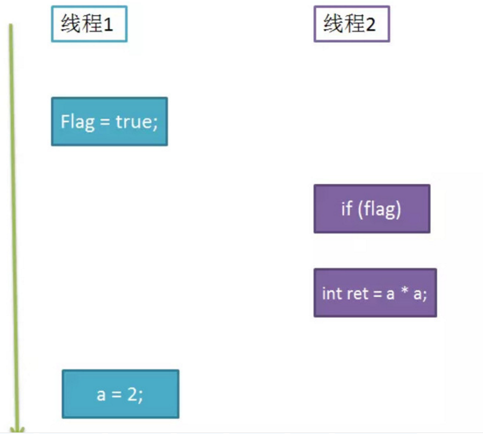 如图所示,write方法里的1和2做了重排序,线程1先对flag赋值为true,随后执行到线程2,ret直接计算出结果,再到线程1,这时候a才赋值为2,很明显迟了一步。 这时候可以为flag加上volatile关键字,禁止重排序,可以确保程序的有序性,也可以上重量级的synchronized和Lock来保证有序性,它们能保证那一块区域里的代码都是一次性执行完毕的。