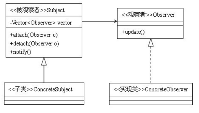 观察者(Observer)相当于事件监听者,被观察者(Observable)相当于事件源和事件,将观察者和被观察者的对象分离开,提高了应用程序的可维护性和重用性。执行逻辑时通知observer即可触发oberverupdate,同时可传被观察者和参数。