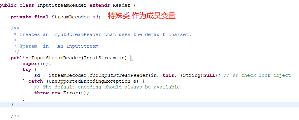 InputStreamReader 将 InputStream 适配到 Reader;需要继承InputStream实现Reader。