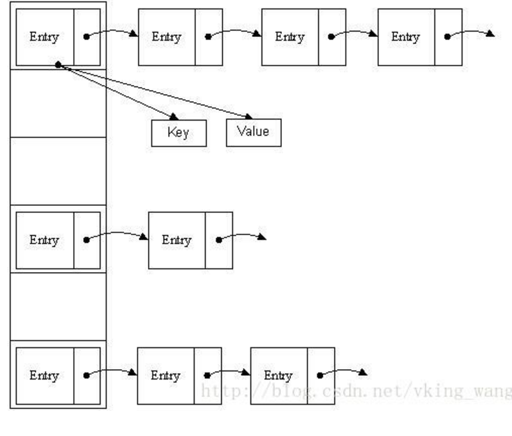 HashMap用的是链地址法来处理冲突的,可以理解为“链表的数组”