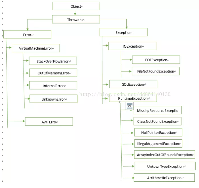 JDK中预定义了一些具体的异常。常见异常类的类框图如下: