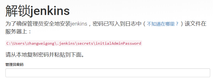 第一次使用jenkins时,为了安全考虑,会生成一串字符口令!