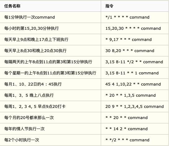 时间分为五种,分、时、日、月、周的顺序组成。默认使用,跟其他的定时任务时间规则都是一样的。