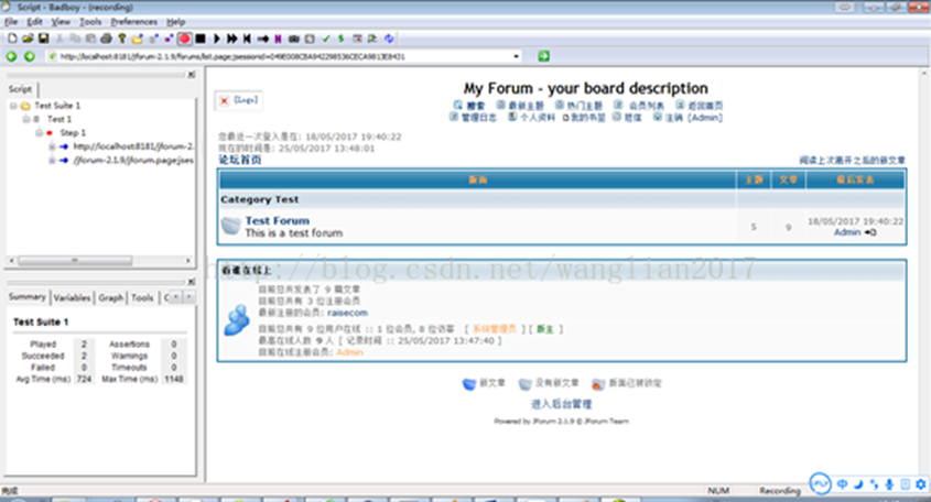 录制完成后点击保存,将录制结果保存为BadBoy脚本,以备后面使用。