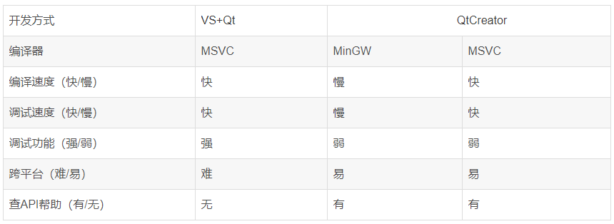 使用VS+Qt库的方式:你开发的程序只管windows上跑,不用跨平台,也不关心是否需要使用Qt Creator打开,那么推荐你使用VS+Qt方式进行开发,VS毕竟速度和调试功能完爆Qt Creator。