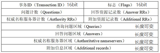 DNS报文格式分为DNS查询和响应的报文格式。这个报文由12字节长的首部和4个长度可变的字段组成。报文中问题字段是由客户填入的,由服务器返回问题的回答、授权和附加信息字段。