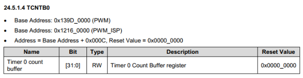 TCNTB0寄存器:设置计数寄存器0的初始值