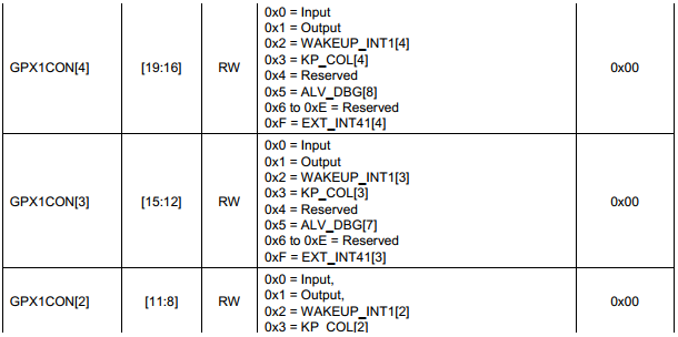 GPD0CON寄存器:控制GPDO组引脚的功能