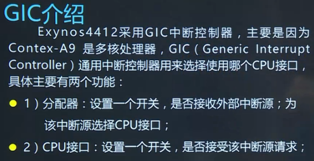 GIC中断管理器:用来管理所有中断的,比如中断的优先级等