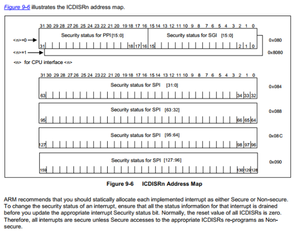 CPU分配器寄存器:ICDISR1、ICDICER1、ICDICPR1、ICDIPTR8