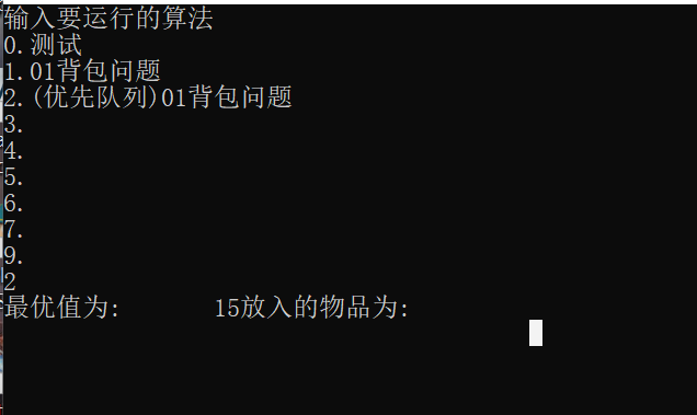 cout << "最优值为: " << Priority_BFS_01Backpack();