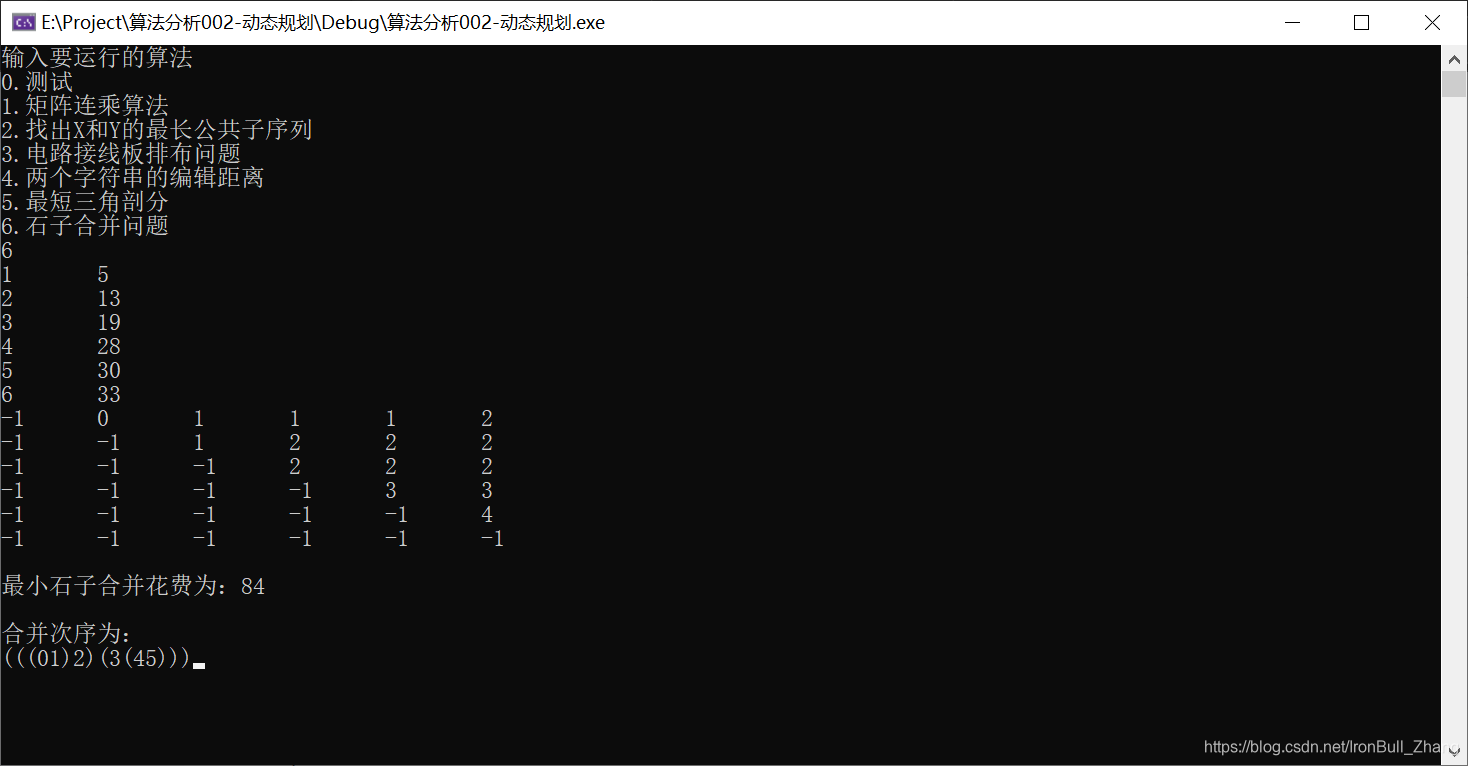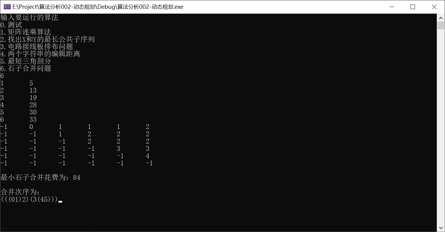 cout << endl << "最小石子合并花费为:" << MergeStone() << endl << endl;