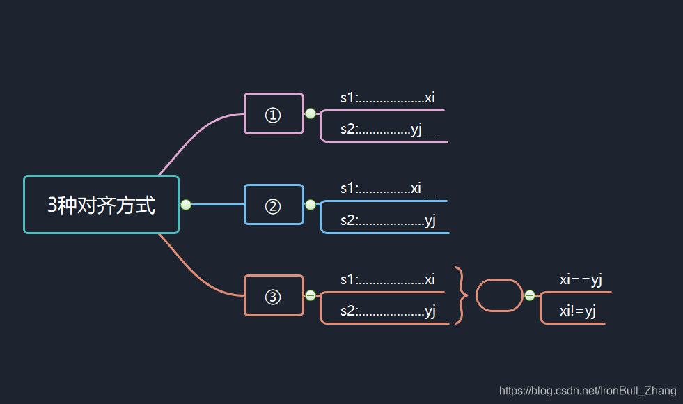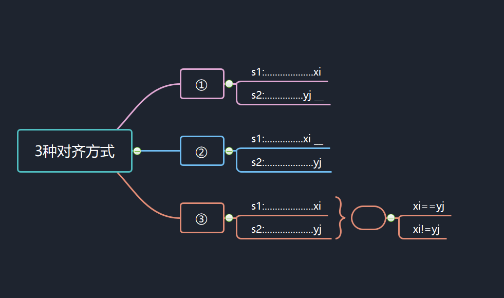 无论两个字符串如何对齐,右侧只有3种对齐方式: