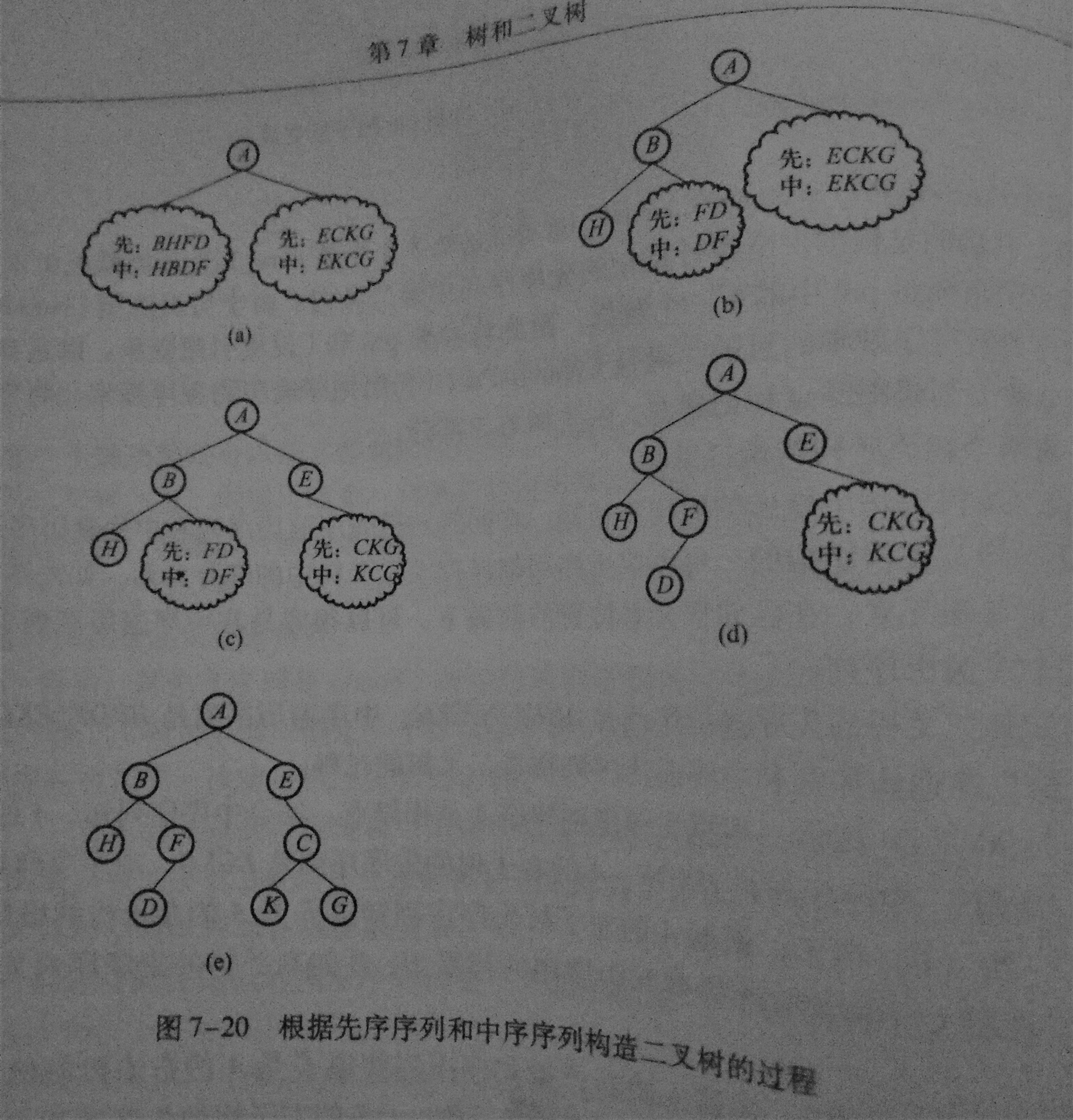 ②-①A的左子树集合为{ B H F D}(前),右子树集合为{E C K G}(前)