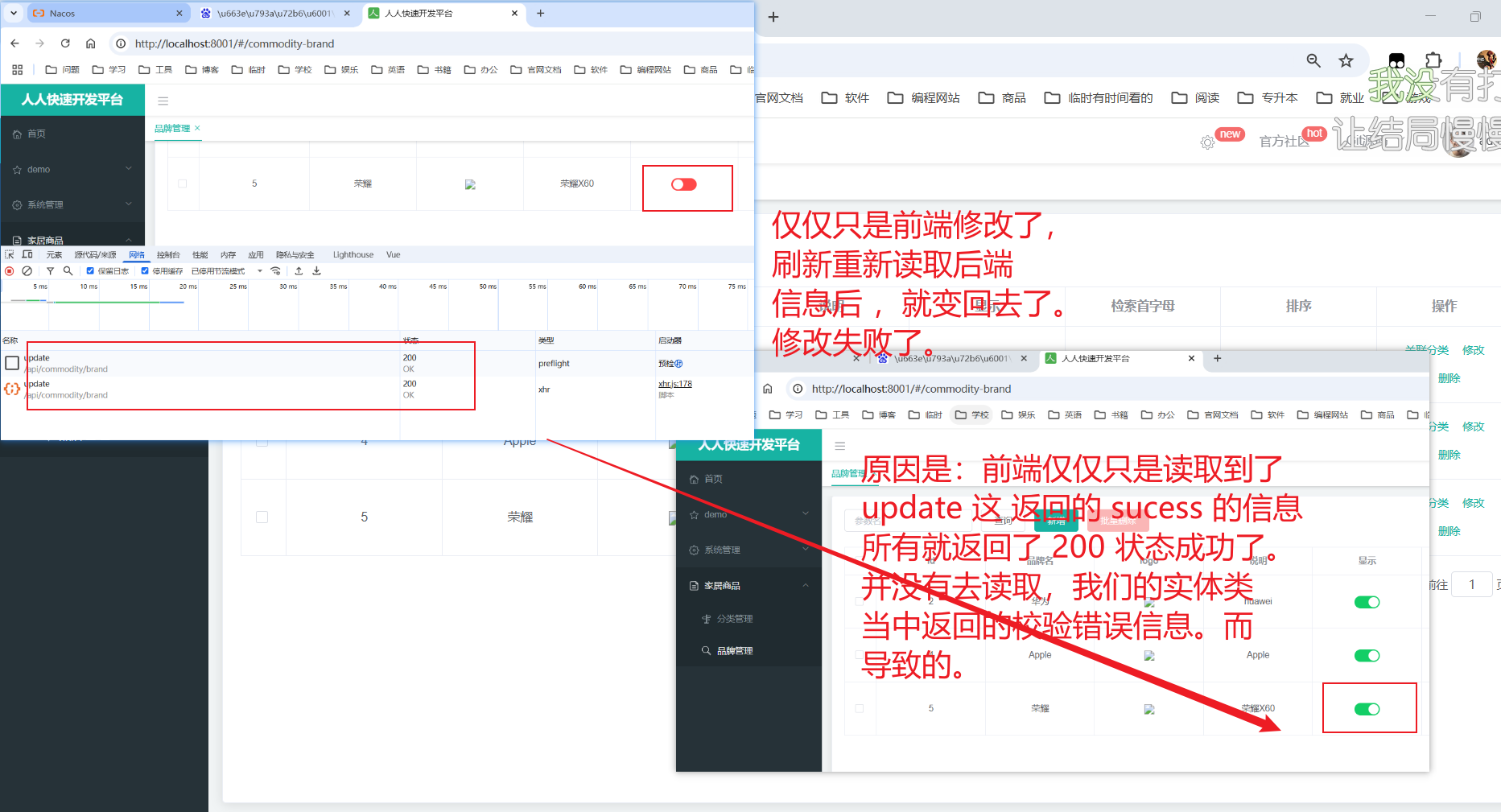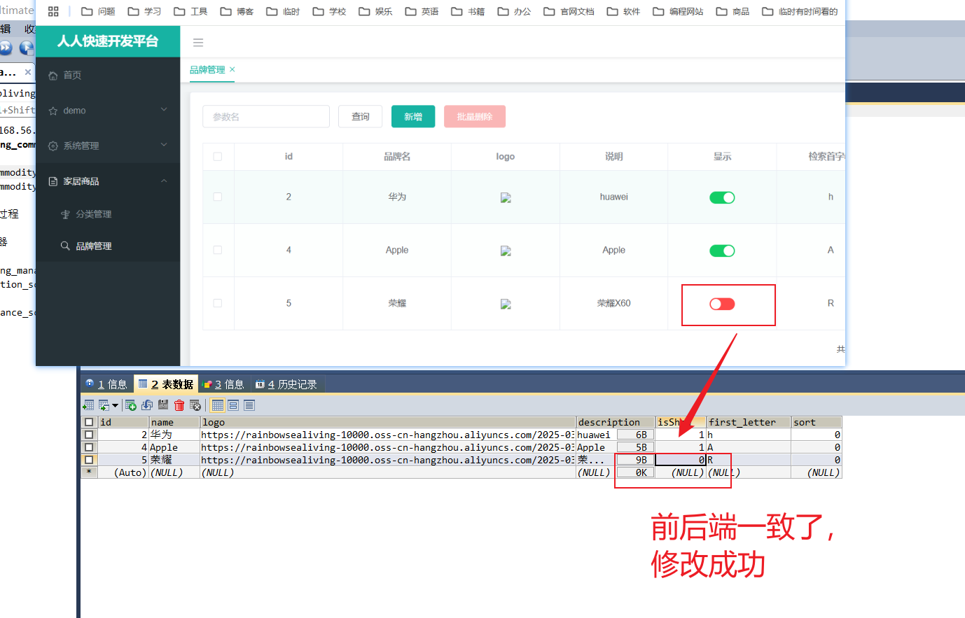 解决思路, 单独在创建一个校验组 UpdateIsShowGroup 和一个updateIsShow() 用于该, switch 开启校验即可, api接口即可。因为我们的 switch 开关,的更新,只需要 id,和 isshow 没有问题就可以了。不需要其他的,实体类上的属性验证。