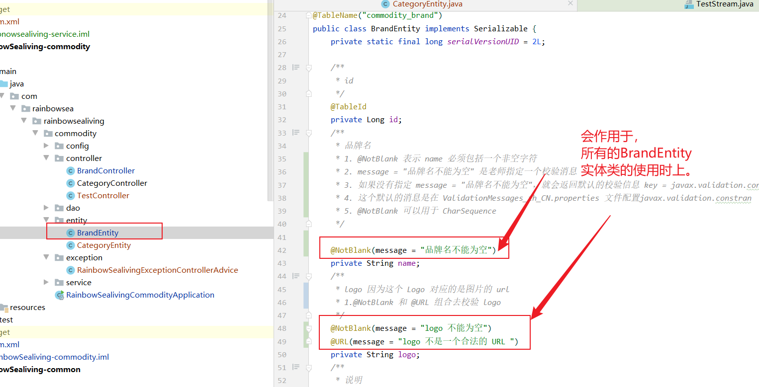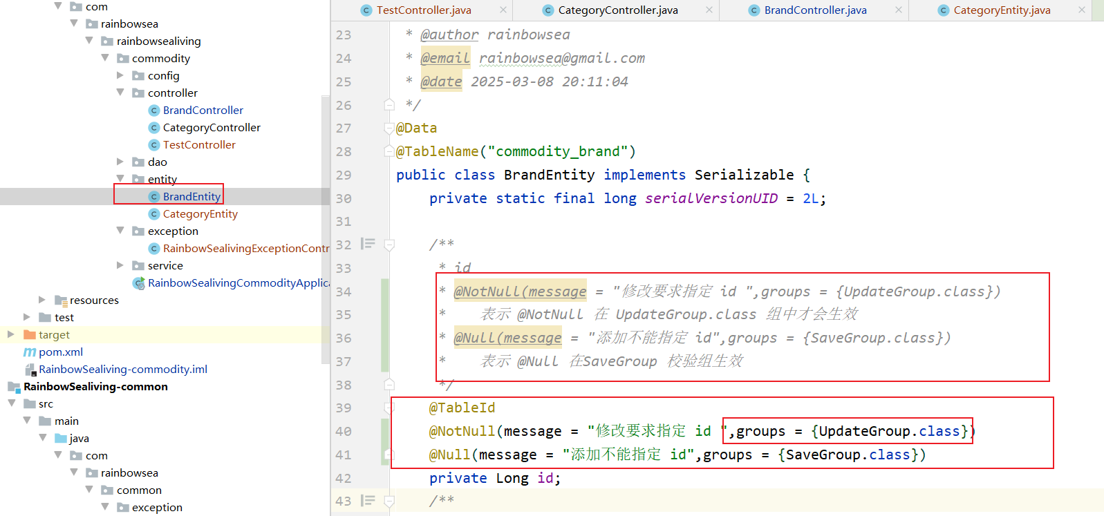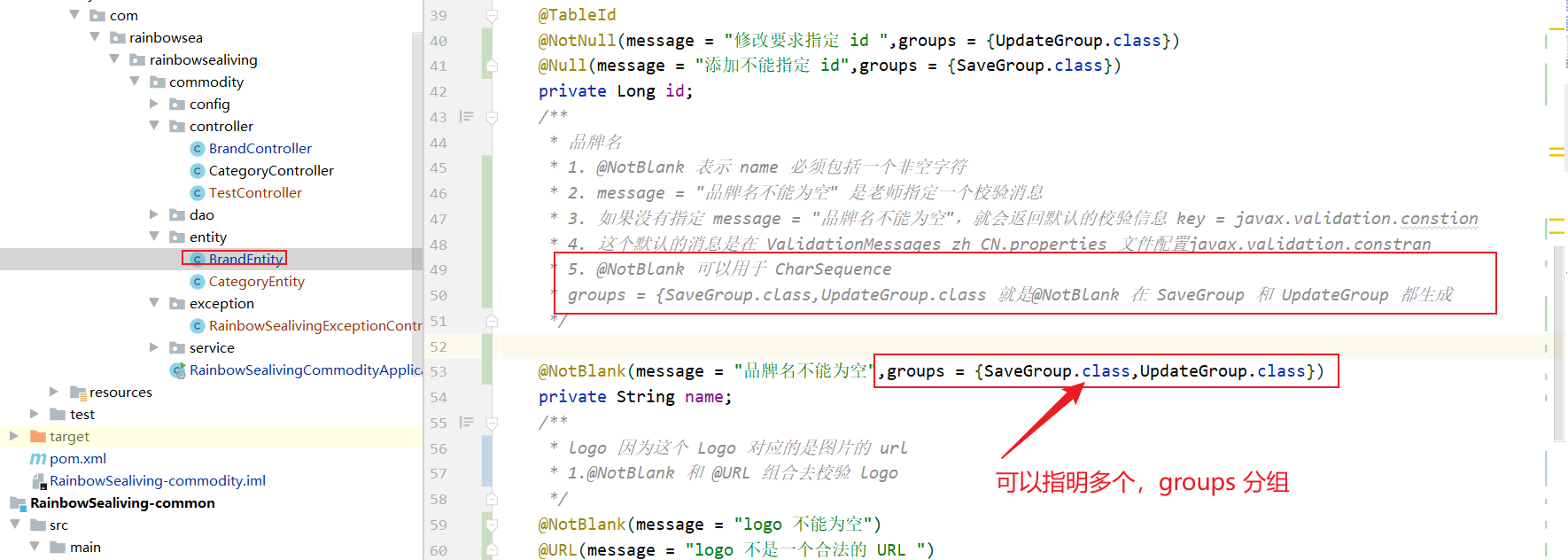 最后,给对应的 BrandEntity.java 实体类,添加上分组校验