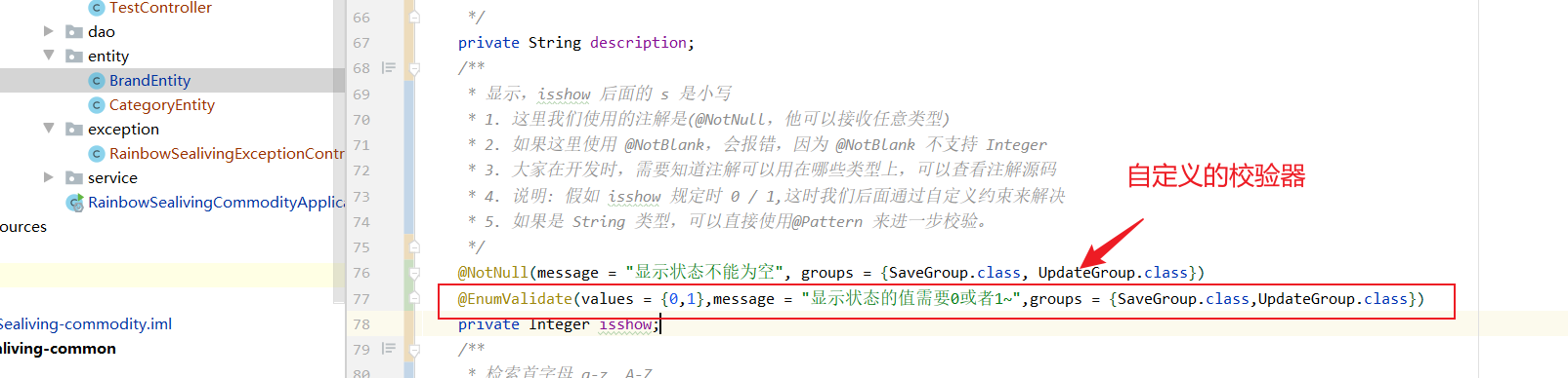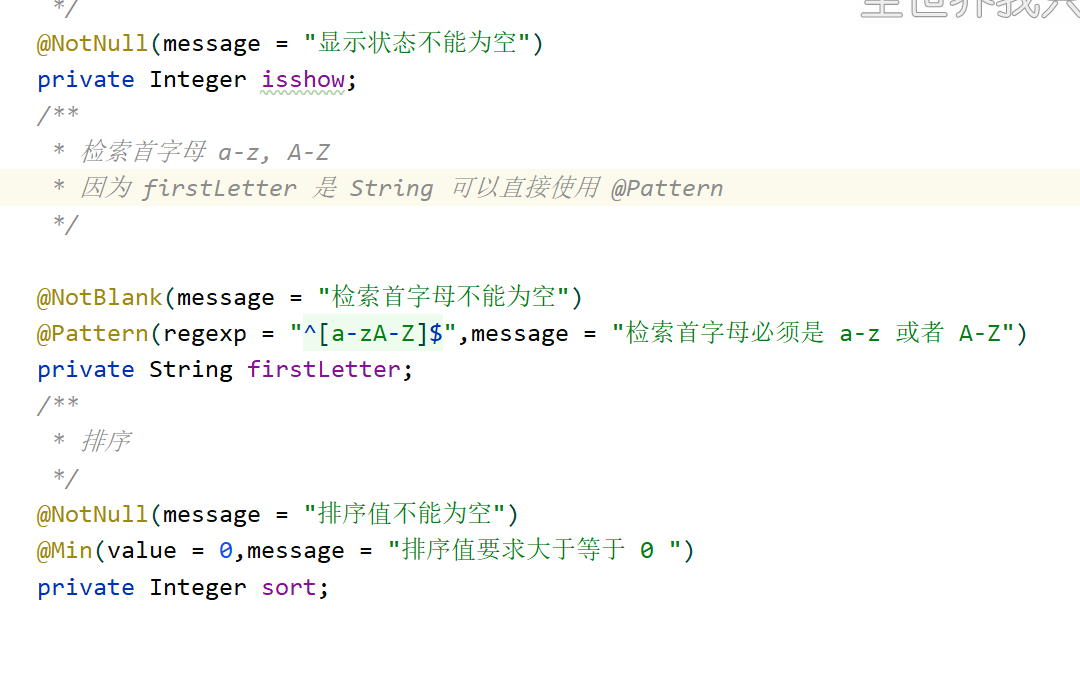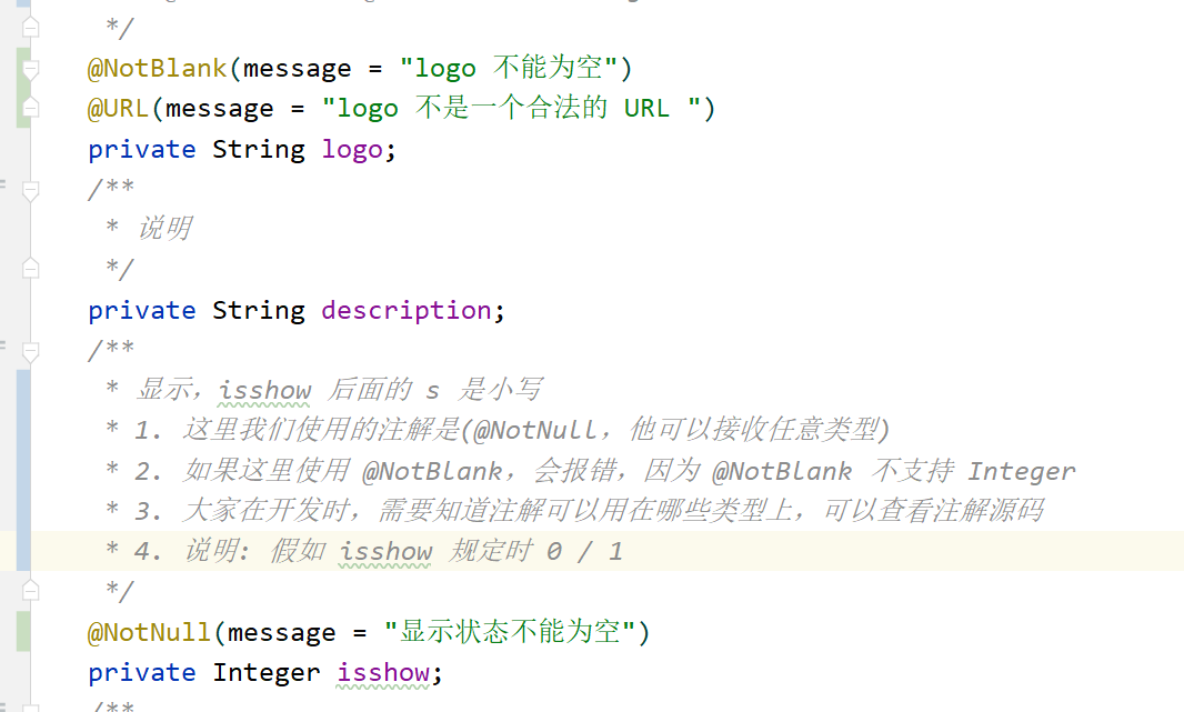 @NotNull(message = "显示状态不能为空", groups = {SaveGroup.class, UpdateGroup.class,UpdateIsShowGroup.class})