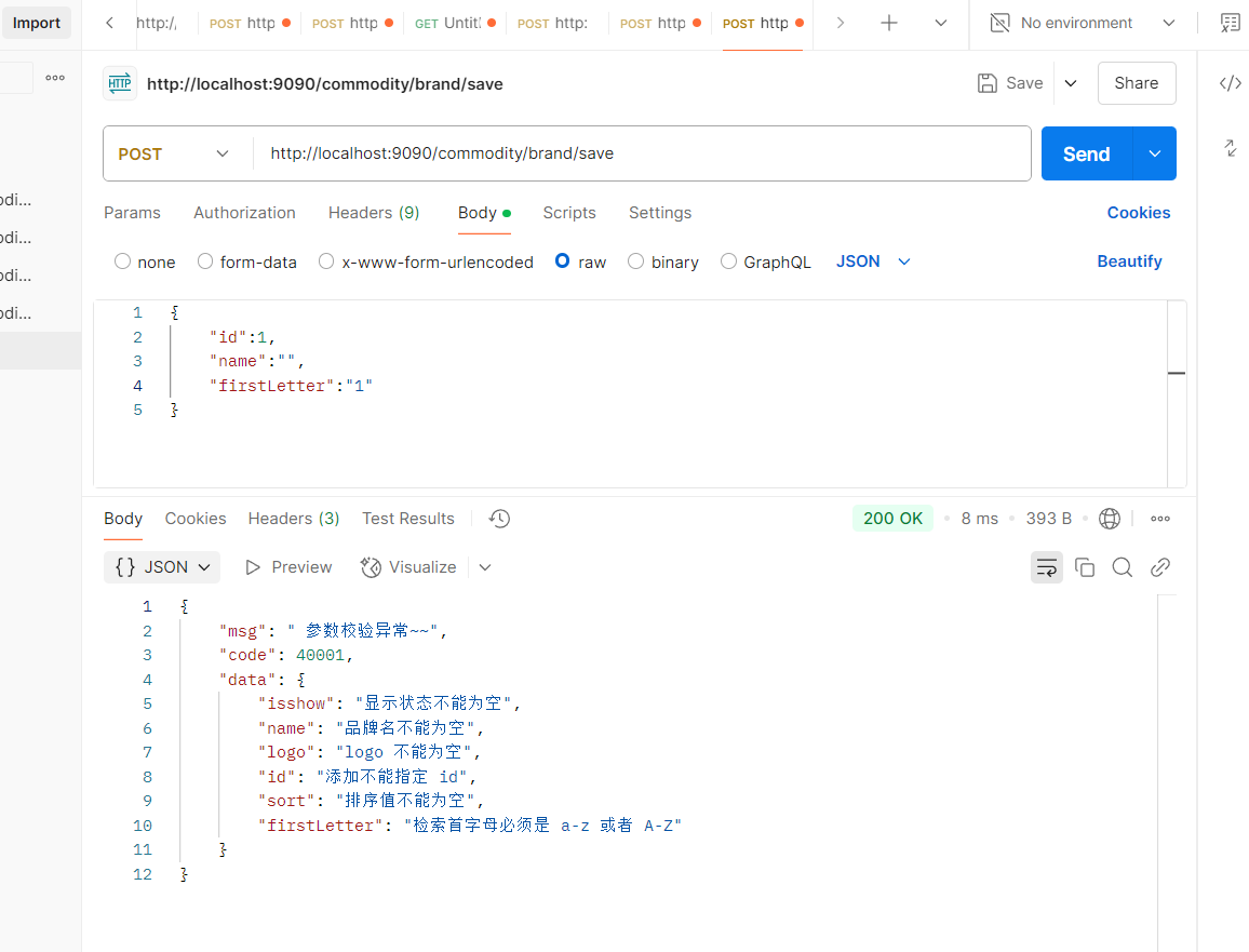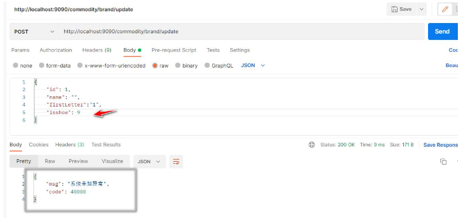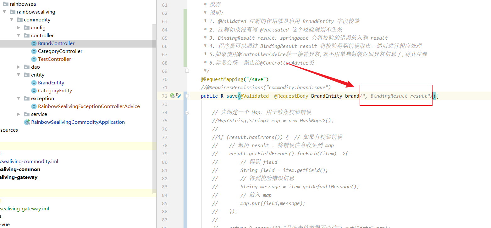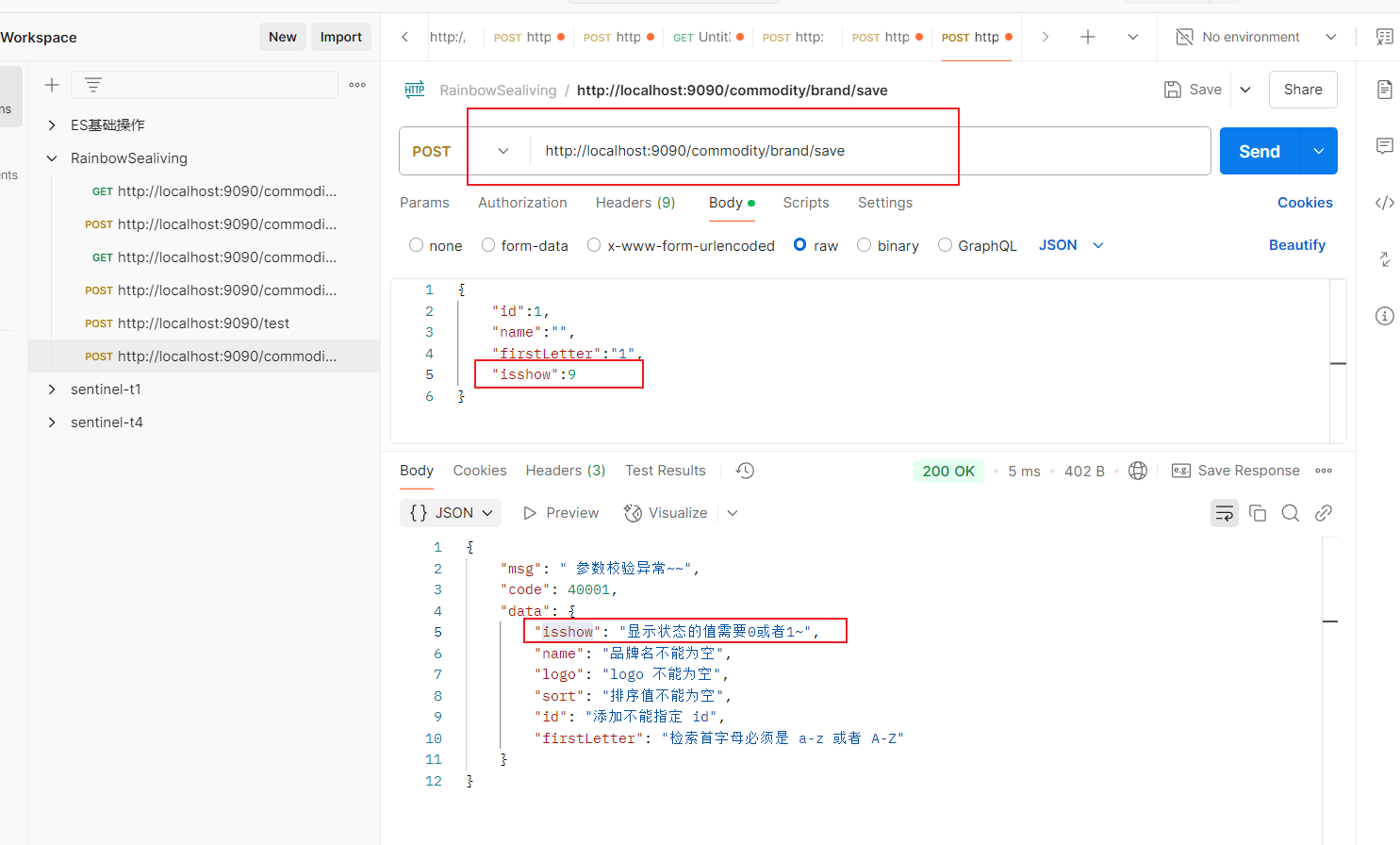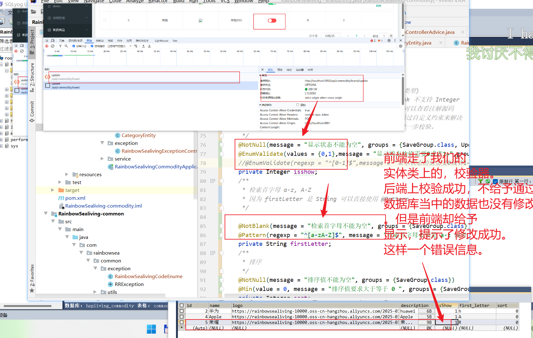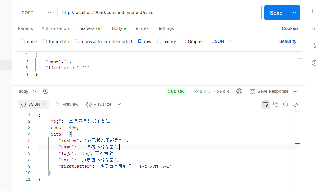 因为修改显示状态,只需要发送 id 和 isshow 两个值,也就是说,只需要校验 BrandEntity.java 的 id 和 isshow 即可