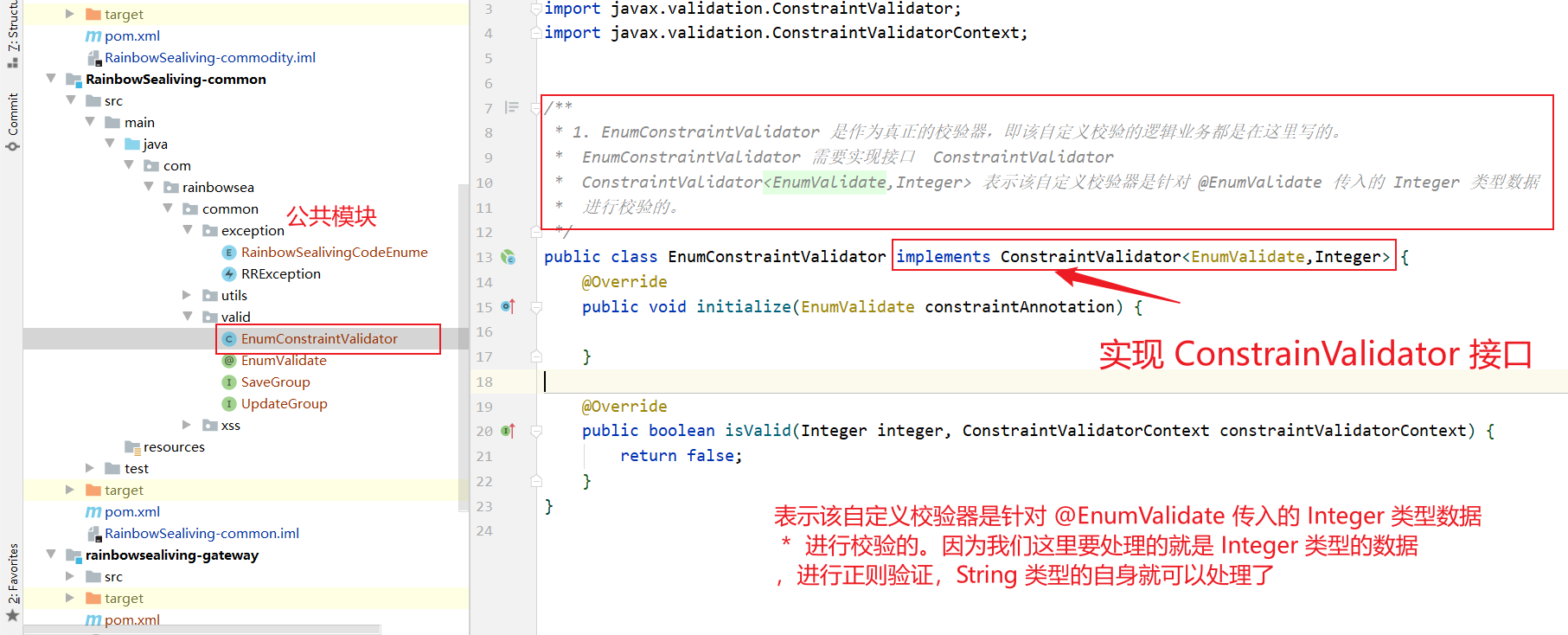 * 2. EnumConstraintValidator.class是自定义的真正的校验器,需要自己开发