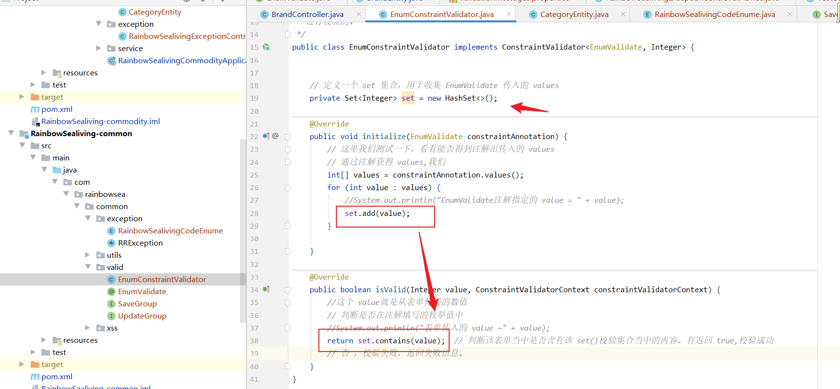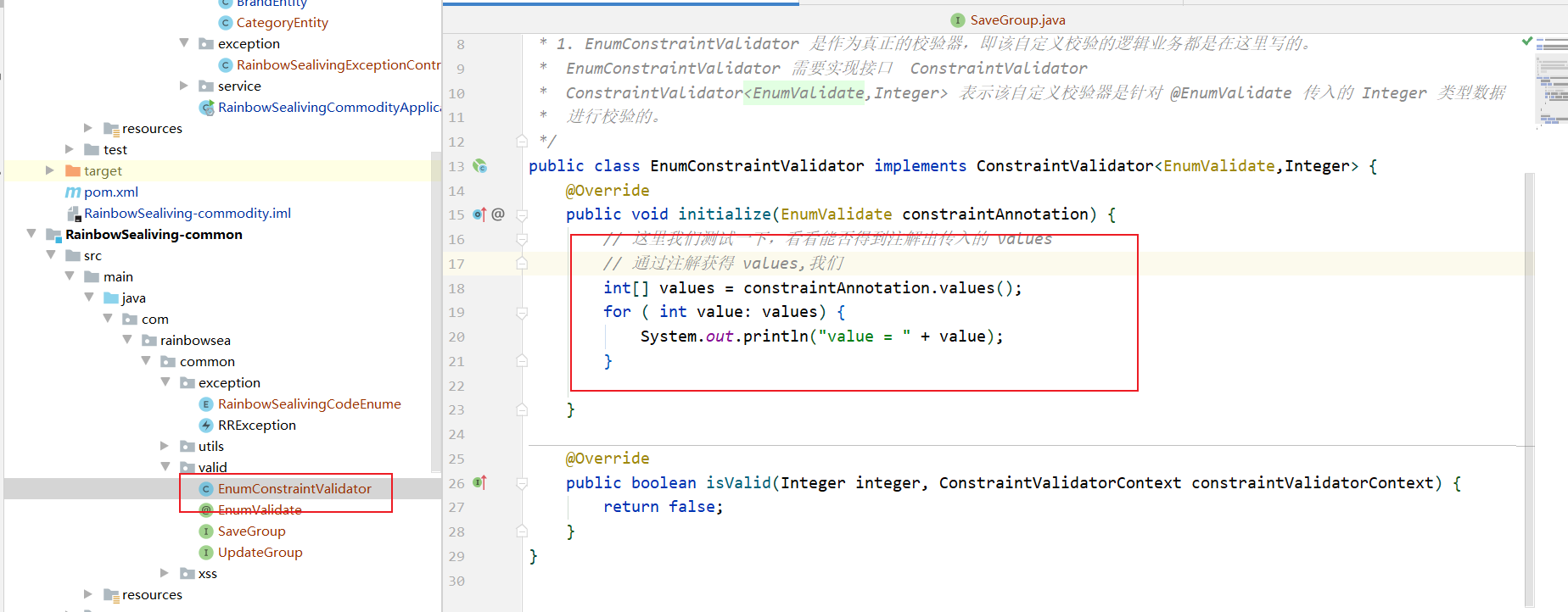 最后编写,EnumConstraintValidator.java 自定义校验上的逻辑业务处理。