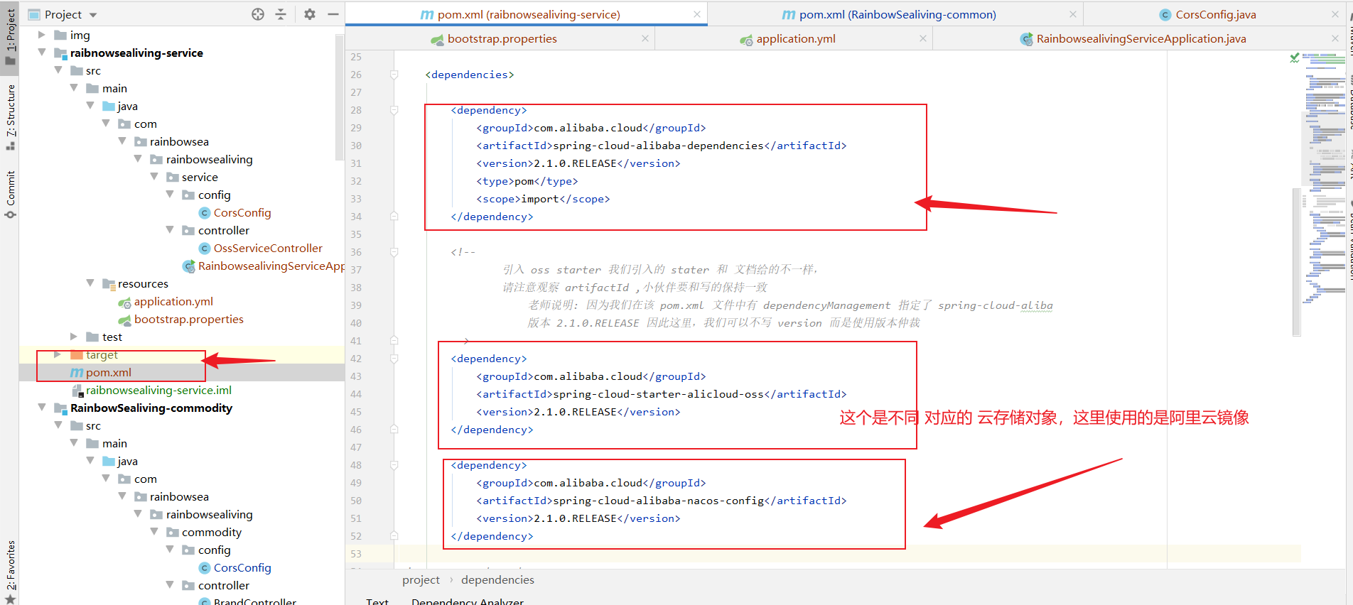 老师说明: 因为我们在该 pom.xml 文件中有 dependencyManagement 指定了 spring-cloud-aliba