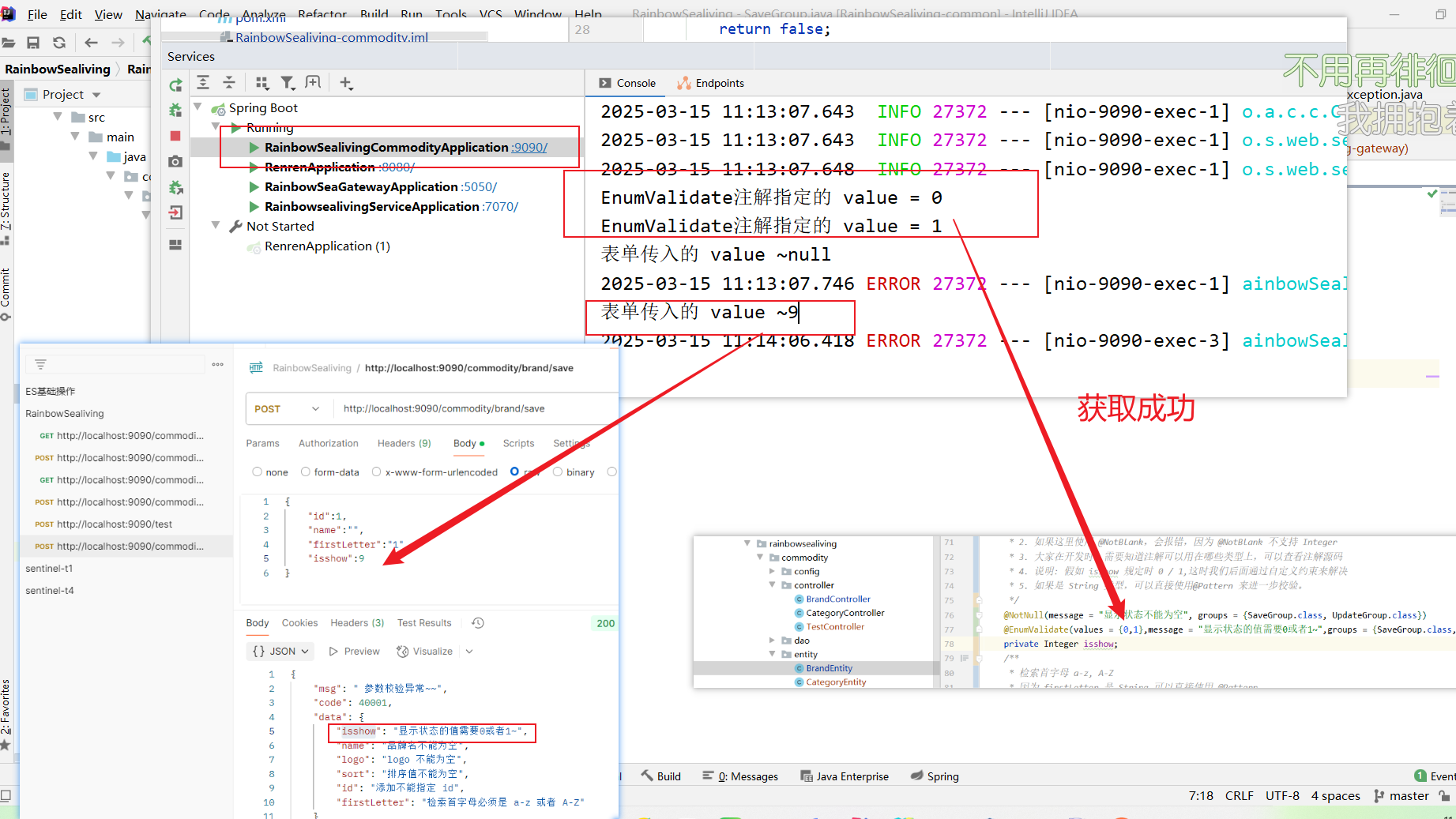 测试成功,则可以正式,编写自定义校验的,逻辑业务处理了。