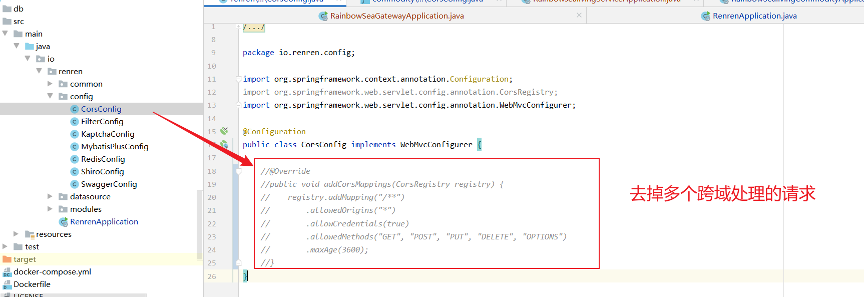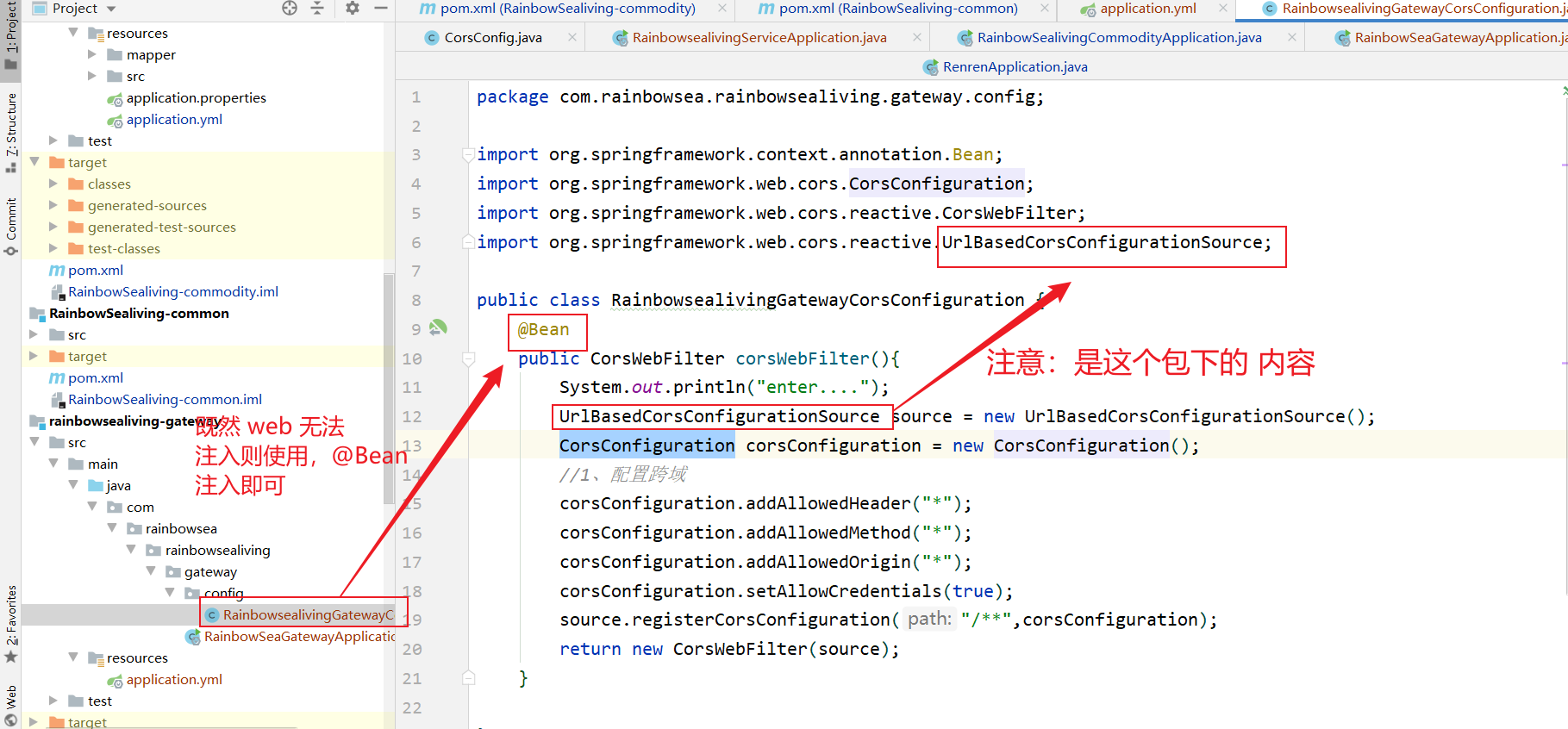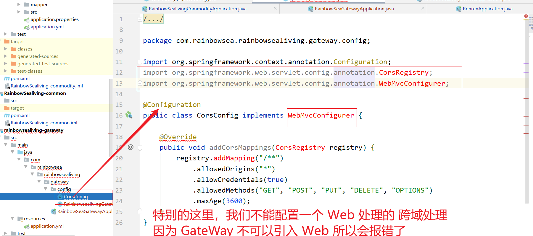 使用之前的 config ,配置的 WEbMvcConfig 不行了,而且 GateWay 不是一个 Web 项目,引入 Web 项目反而会报错。