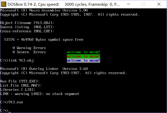 mov si,0 ;(3) int 21h的2号子功能,完成单个字符输出的方法,即:
