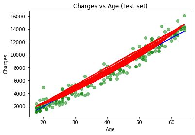 print('Charges = %.2f * Age + %.2f * Age^2 + %.2f * Age^3 + %.2f * Age^4 + %.2f'