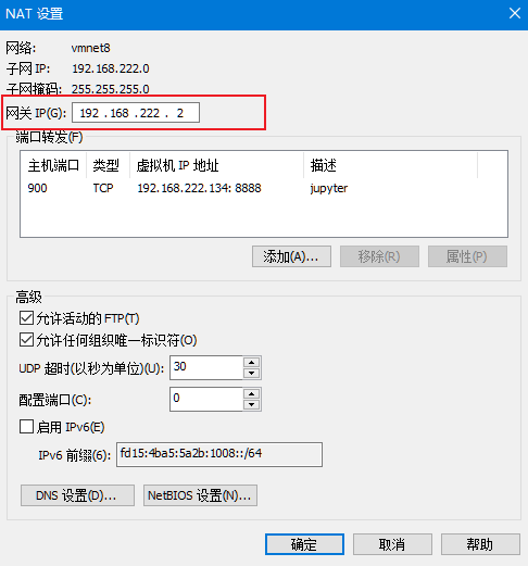 IP地址设置范围为192.168.222.0-255,注意IP地址不要与网关相同。