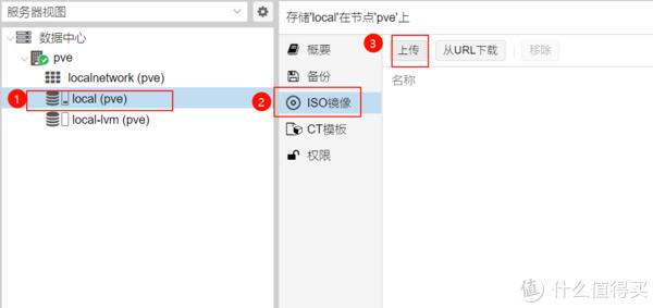 1、首先需要上传安装镜像,通过local(pve)→ISO镜像→上传,将win10镜像上传到pve中。
