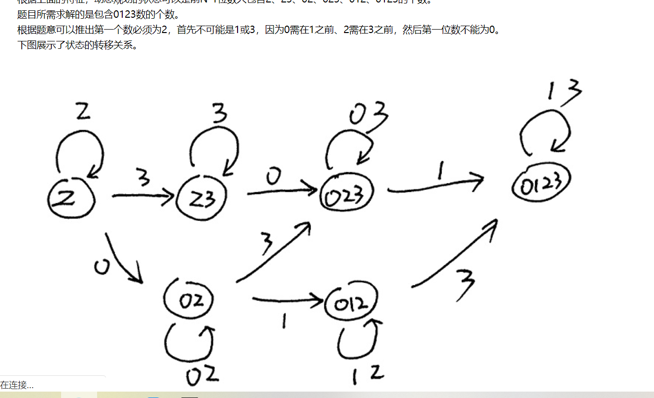 这里应该使用数位DP,也就是用不同的状态表示前面的数的属性,然后每次插入数据时根据状态进行转移,这里可以看: