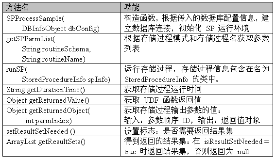 在已经生成的测试代码中,如何运行存储过程也是一个问题。将大批的数据库操作写在测试代码中是不合适的,真正对测试有用的代码可能会被淹没在这些大量的辅助代码之中,而造成代码的混乱和维护困难。因此我们封装了一个类,用它专门来运行存储过程,这个类叫做 SPProcessSample,它提供了以下主要方法有: