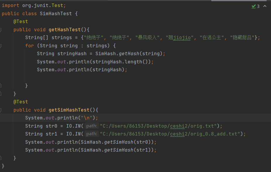 二、SimHash 类测试
