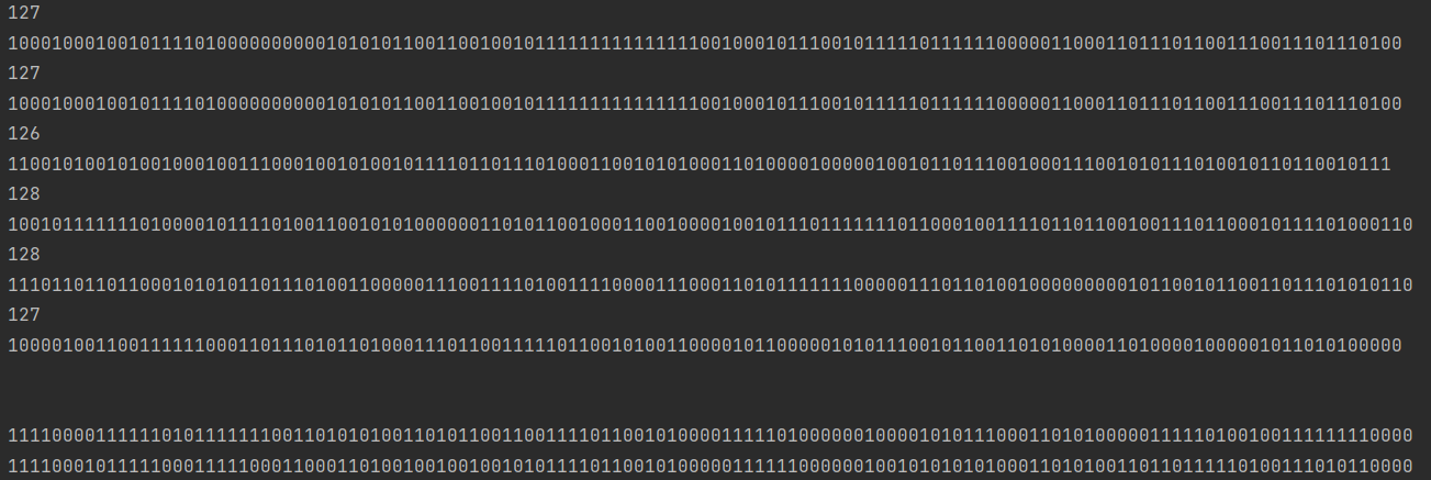 把上面各个单词算出来的序列值累加,变成只有一个序列串。比如“美国”的 4 -4 -4 4 -4 4 ,“51区”的 5 -5 5 -5 5 5 , 把每一位进行累加,4+5 -4+-5 -4+5 4+-5 -4+5 4+5 ==> 9 -9 1 -1 1 9 。