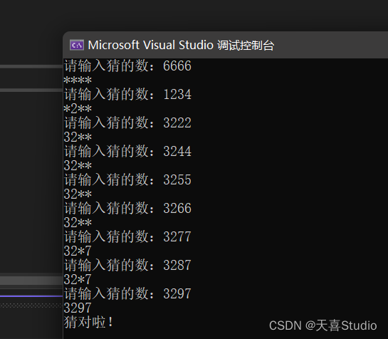 并且在对的数字中又有几位位置 也是对的,将结果显示出来,给人以提示,请人再猜,