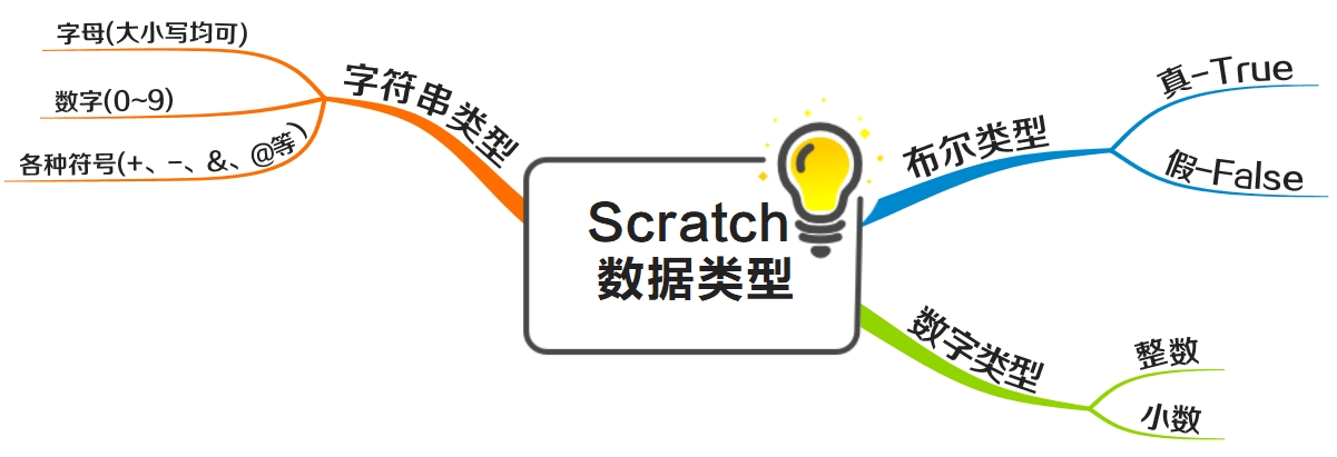 从某个角度讲,应用程序的任务是处理各种数据类型(如文本、数字、图像等)的数据并生成有价值的信息。因此,要完成编程任务,必须要理解Scratch中数据类型的概念和Scratch所支持的操作。