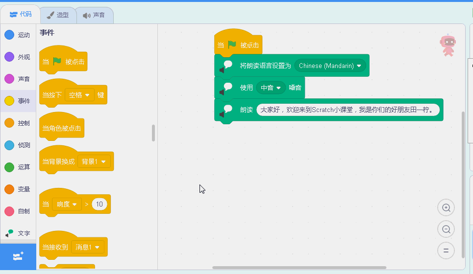 Scratch编程(八)扩展模块:文字朗读模块
