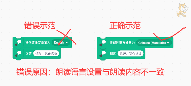 朗读前必须设置朗读的语种(如中文、英文、日语等等),在Scratch3.0种有23种语种。朗读的语种要与你填写的内容要对应上。假设你设置朗读语种为中文,你朗读内容框应该填入中文汉字。具体如下图: