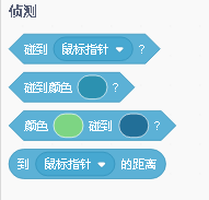 侦测模块积木组里的所有的积木都是用来检测场景中某一参数的变化,通过参数变化来为下一步操作提供条件依据。
