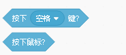侦测按键积木组包含了键盘上所有常用键的按键操作以及鼠标点击操作。