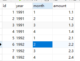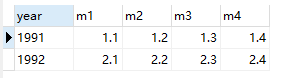 select sales.year , (select t.amount from sales t where t.month='1' and t.year= sales.year) 'm1', (select t.amount from sales t where t.month='2' and t.year= sales.year) 'm2', (select t.amount from sales t where t.month='3' and t.year= sales.year) 'm3', (select t.amount from sales t where t.month='4' and t.year= sales.year) as 'm4' from sales group by year;
