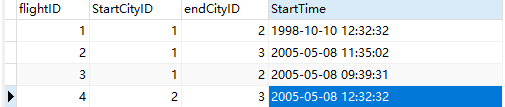 (2)查询北京到上海的所有航班纪录(起飞城市,到达城市,起飞时间,航班号)